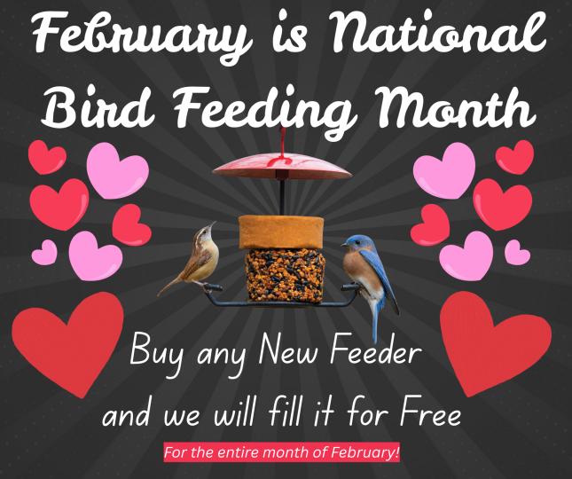 February is all about caring for the birds we love, and there’s no better time to start feeding than National Bird Feeding Month. When you purchase any new feeder, we’ll fill it FREE so you can head home ready to welcome colorful winter visitors right away. Cold weather makes natural food harder to find, and your feeder becomes a reliable lifeline that helps birds maintain energy, survive harsh conditions, and stay healthy until spring. It’s the perfect time to upgrade your setup, try a new feeder style, and enjoy more activity, more song, and more connection right outside your window.